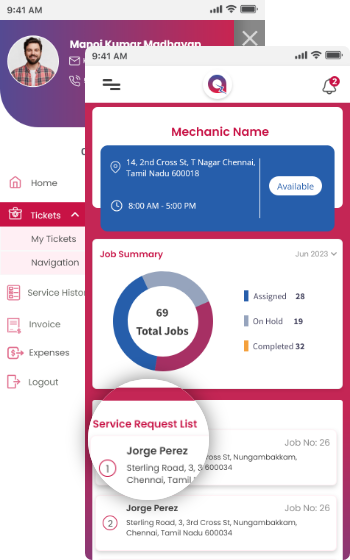 QuikAsist empowers customers by placing them in the driver's seat. Our state-of-the-art mobile app facilitates customers to easily create, manage, monitor service complaints, work order history, invoices, and more. The mobile app offers visibility to check real-time executive tracking, follow up inquiries, receive timely job updates, ensuring a smooth experience throughout.
